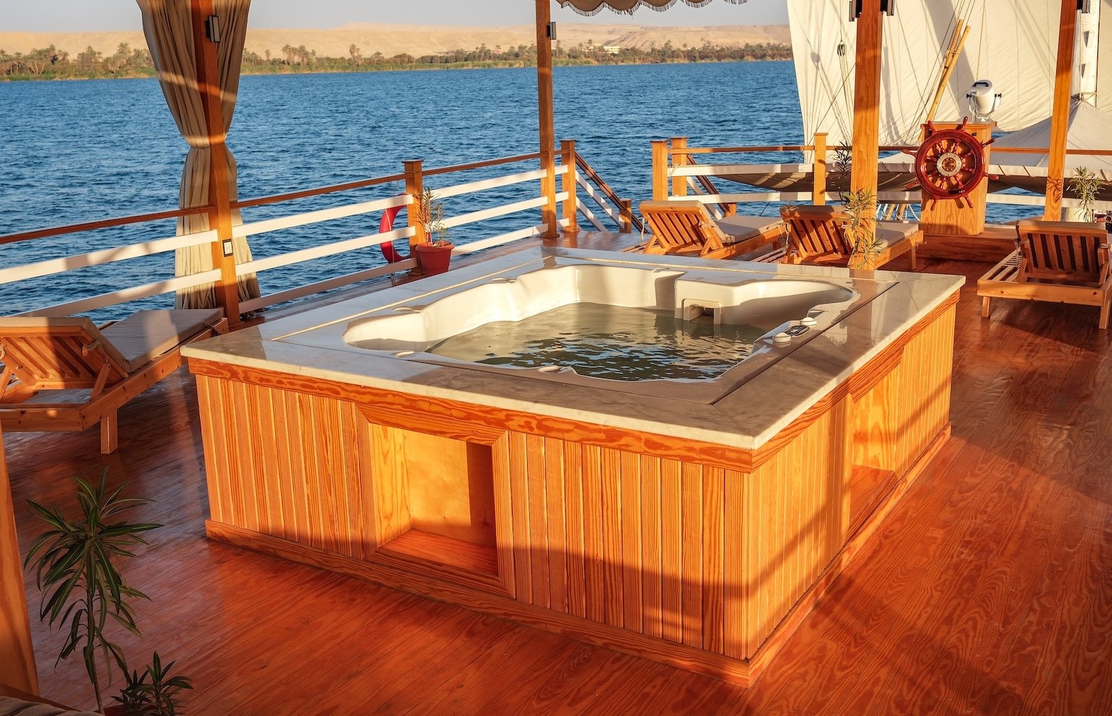 Unwind in our luxurious Jacuzzi, an inviting haven where you can relax and rejuvenate while taking in the tranquil Nile views.