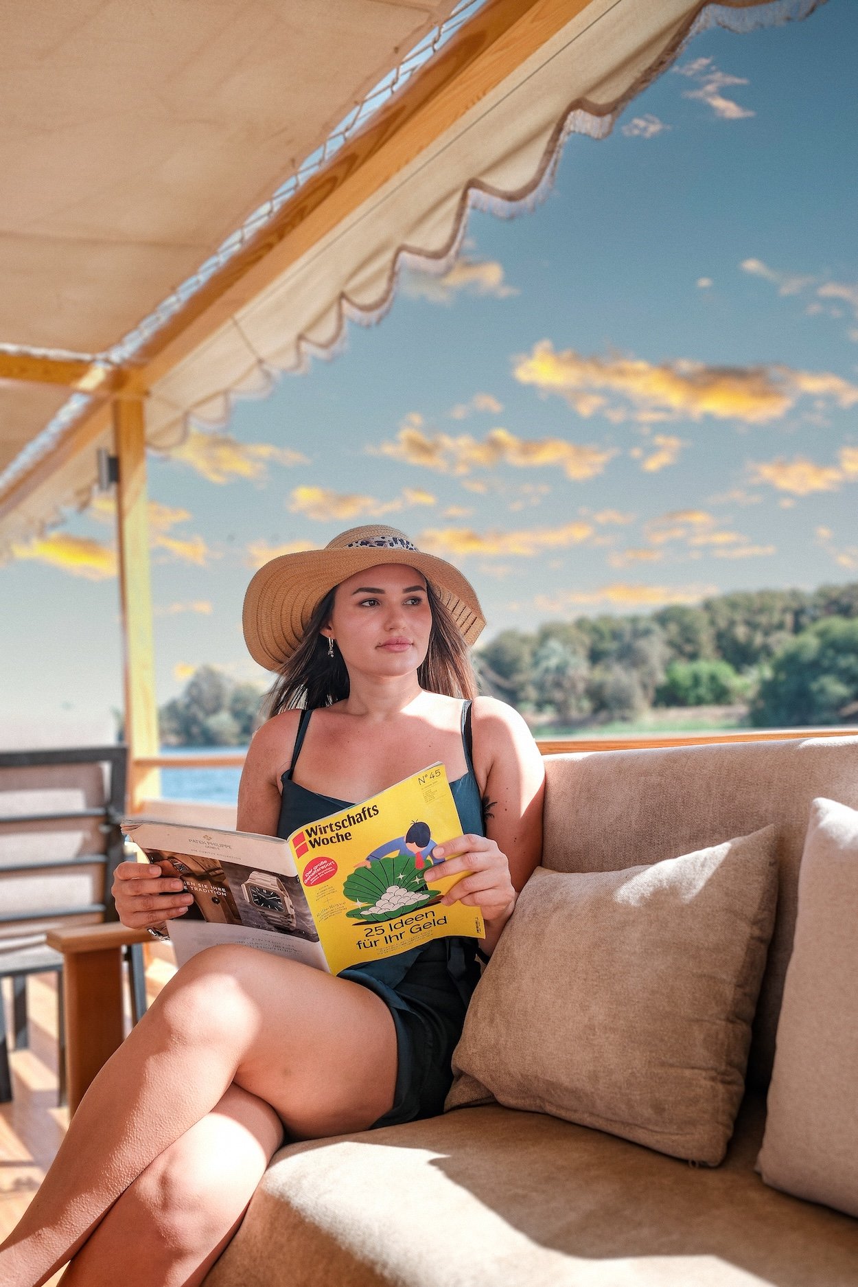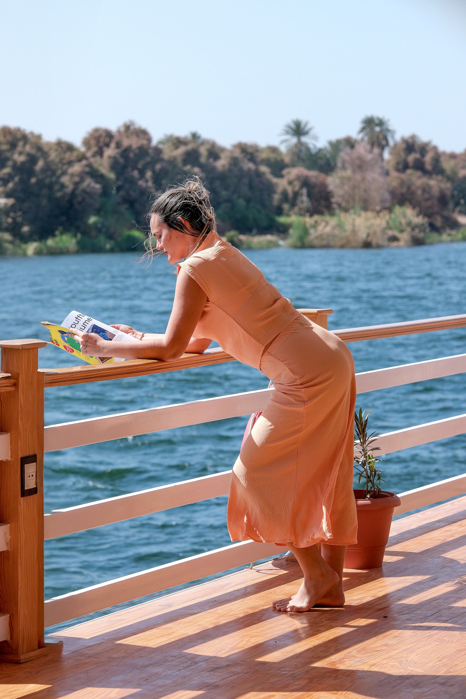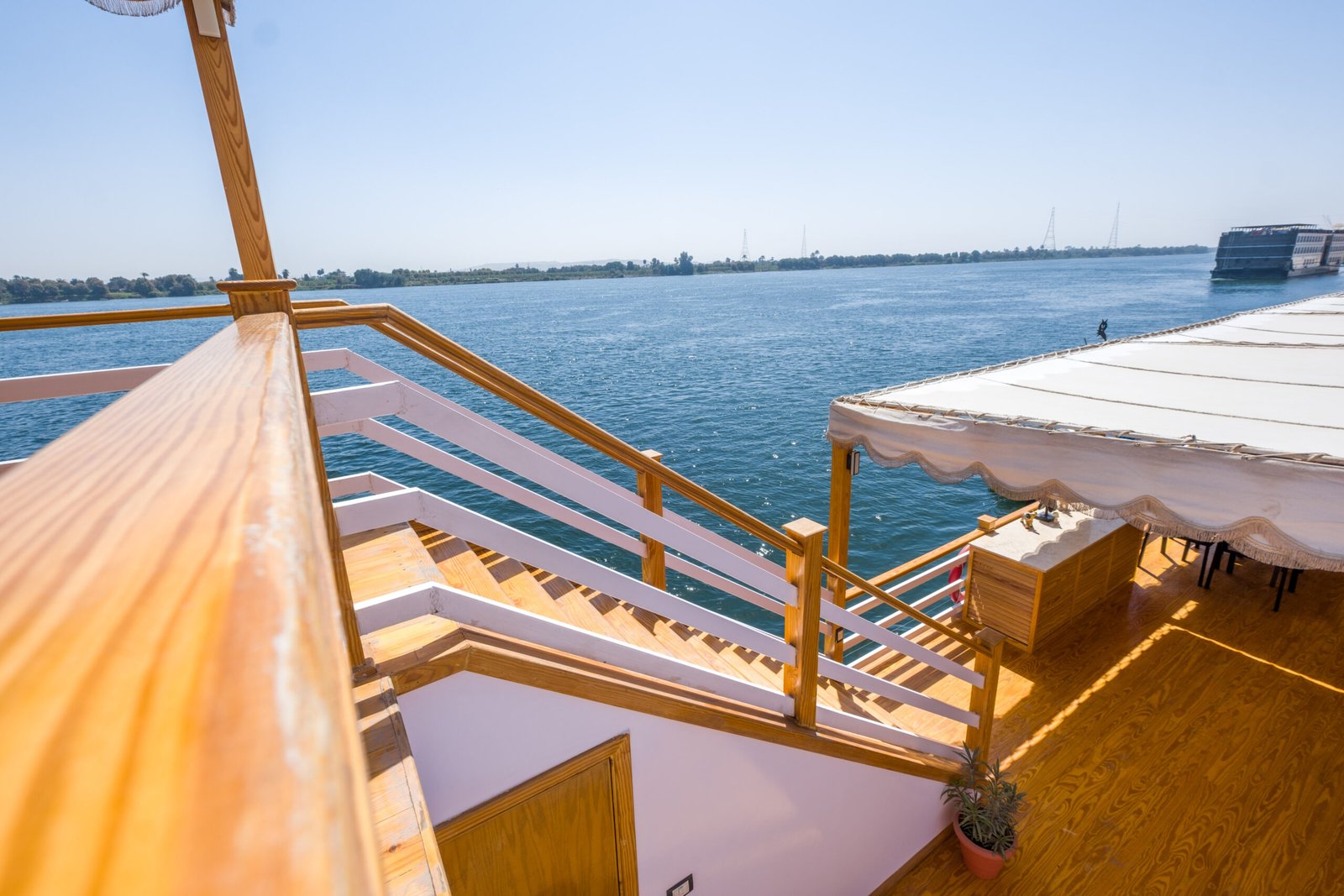 At Swan Dahabiya, every detail has been designed to ensure a luxurious and unforgettable Nile cruise experience. Our vessel features 10 spacious cabins (25 square meters each) and 2 premium suites (28 square meters) with breathtaking panoramic views of the Nile, offering the perfect blend of elegance and tranquillity.
