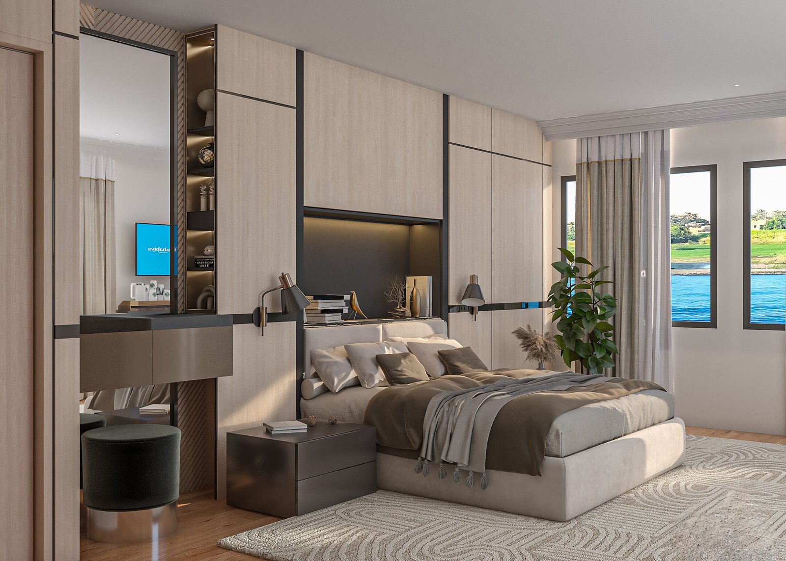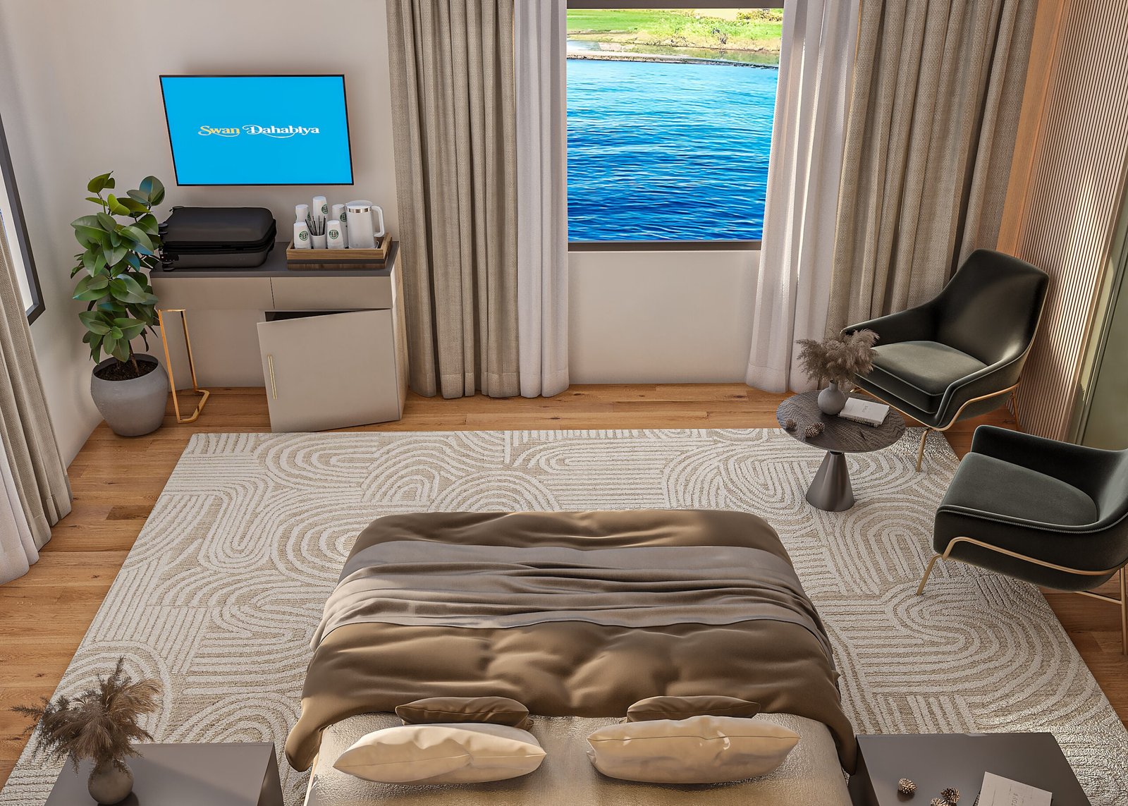 The Swan suite is the largest suite on the Nile, offering ( 28 sqm ) of space and breathtaking panoramic view of the river.